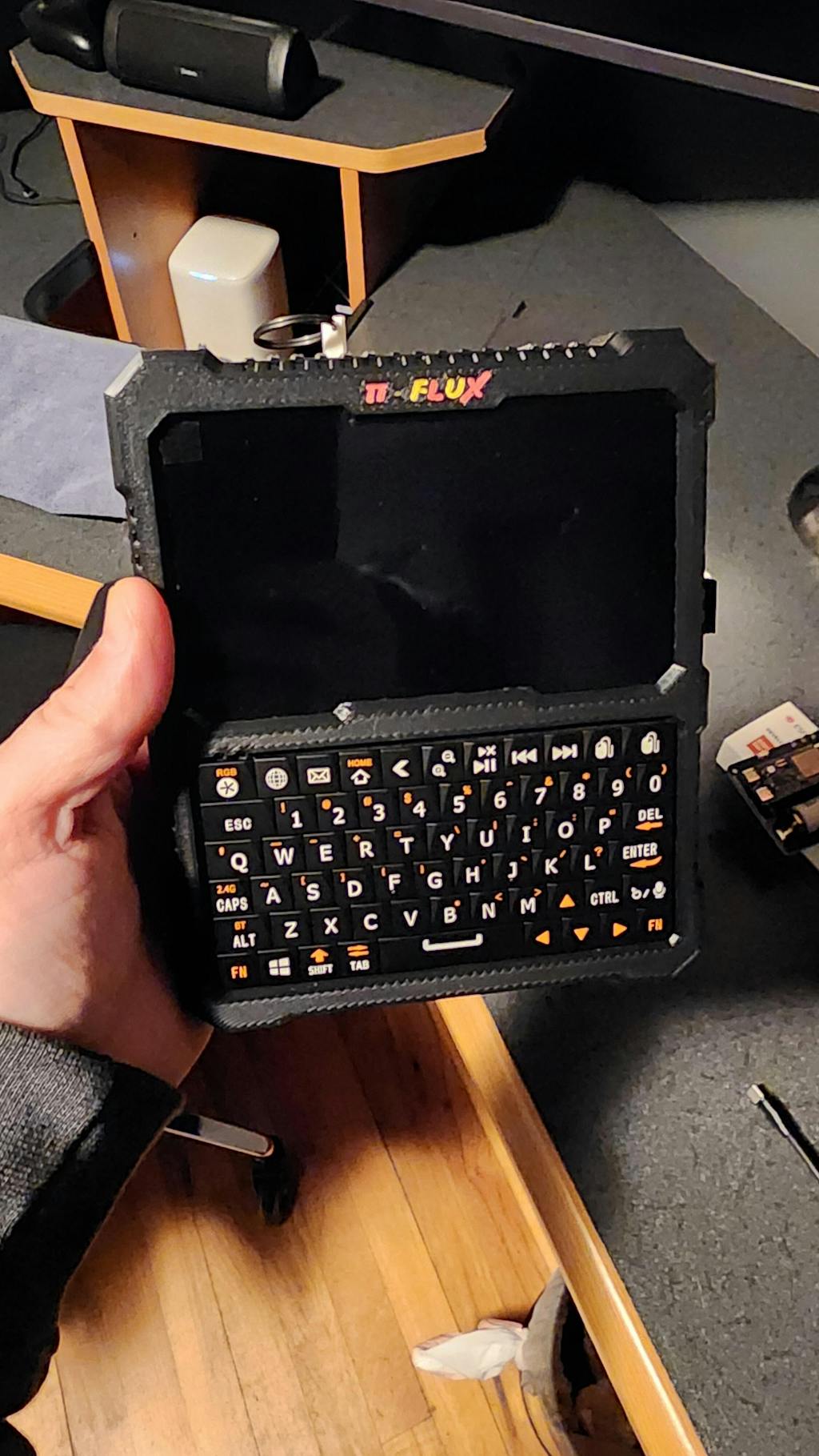 Expanded RGB Keyboard With Integrated Cursor. No more BT keyboard, the PI FLUX includes a much larger, ergonomic RGB keyboard with a built-in gyroscopic cursor, offering full control in a compact body.